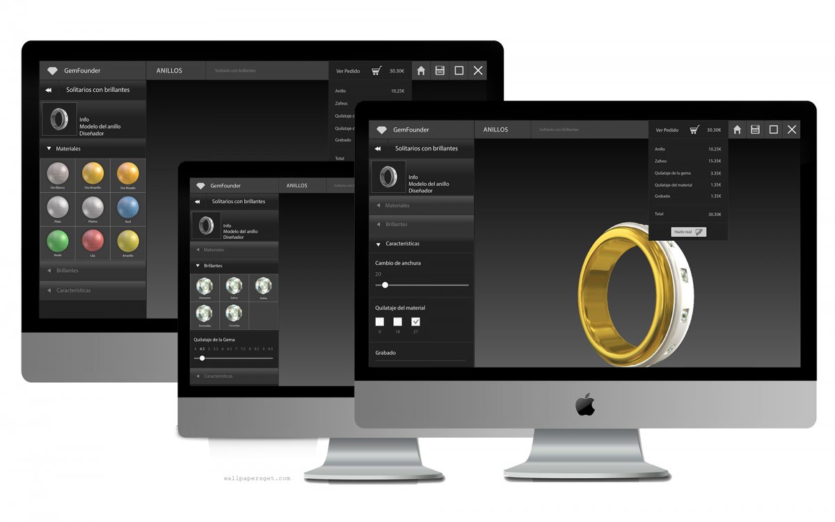 4 - Probador de anillos Virtual - Ver ejemplos: Creamos probadores de anillos virtuales virtual mediante tecnología de realidad aumentada. Nuestra tecnología permite que el anillo se adapte perfectamente a los dedos de la mano. Preparamos las animaciones 3D en cualquier formato requerido, para ser expuestas en Internet, Congresos, Ferias o Exposiciones con los máximos niveles de calidad. Nuestros formatos permiten incluso exportar los modelos para ser impresos en 3D